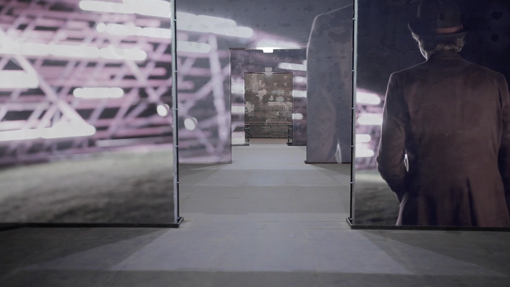 The original 360° experience features a central projection on a triangular table, with four interconnected screens enhanced by animated light design.
