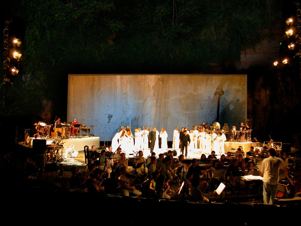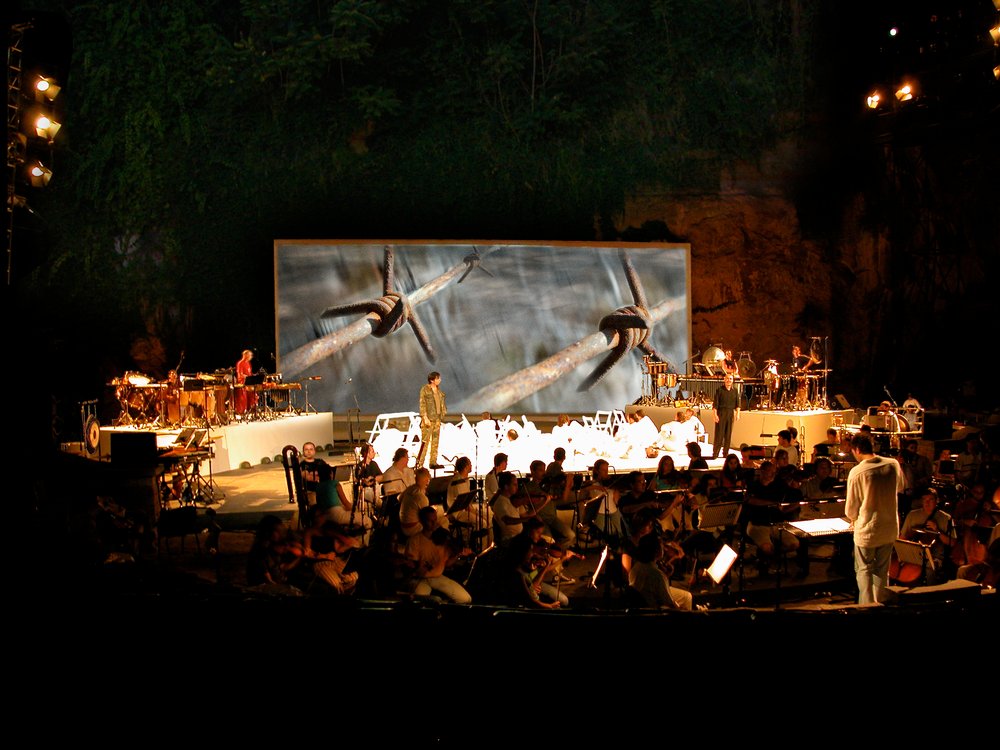 A powerful collective opera by seven contemporary composers for orchestra and mixed choir in a critique of war and violence. Libretto: Albert Mestres | Musical concept: Josep Vicent | Director: Ramón Simó Co – produced by: Festival Castell de Peralada, Institut Valencià de la Música, Fòrum Grec 04 de Barcelona Featuring: Choir of València, Amsterdam Percussion Group, Orquestra Pablo Sarasate Projections and screen designs: Marta Hincapié & Marius Wehrli